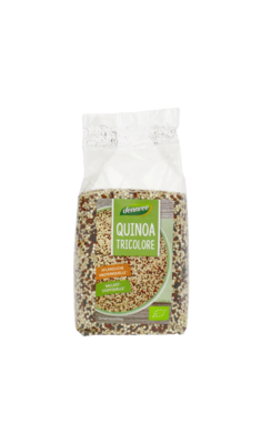 Der dennree Quinoa Tricolore vereint weißen, roten und schwarzen Bio-Quinoa zu einer farbenfrohen Mischung mit leicht nussigem Geschmack und fein-körniger Konsistenz. Es eignet sich bestens für Bowls, Salate oder als Beilage.